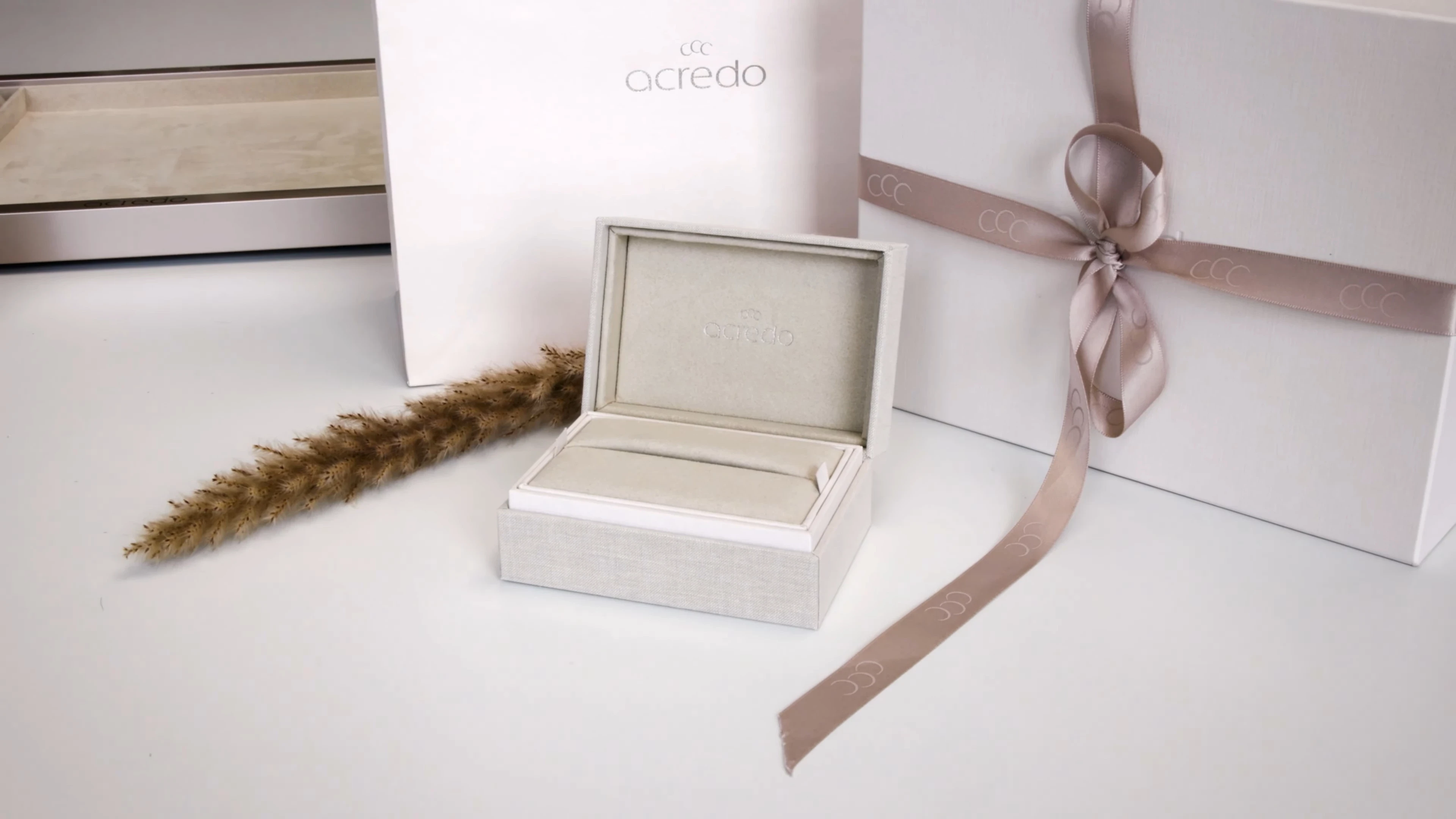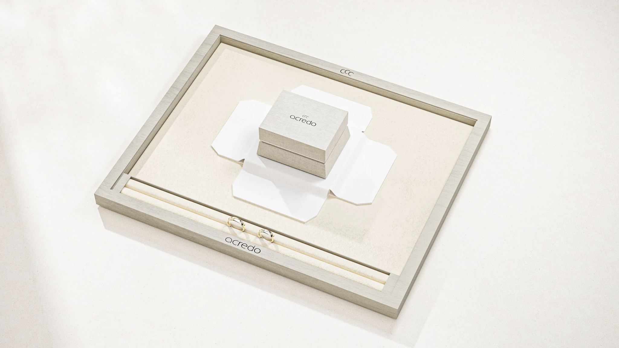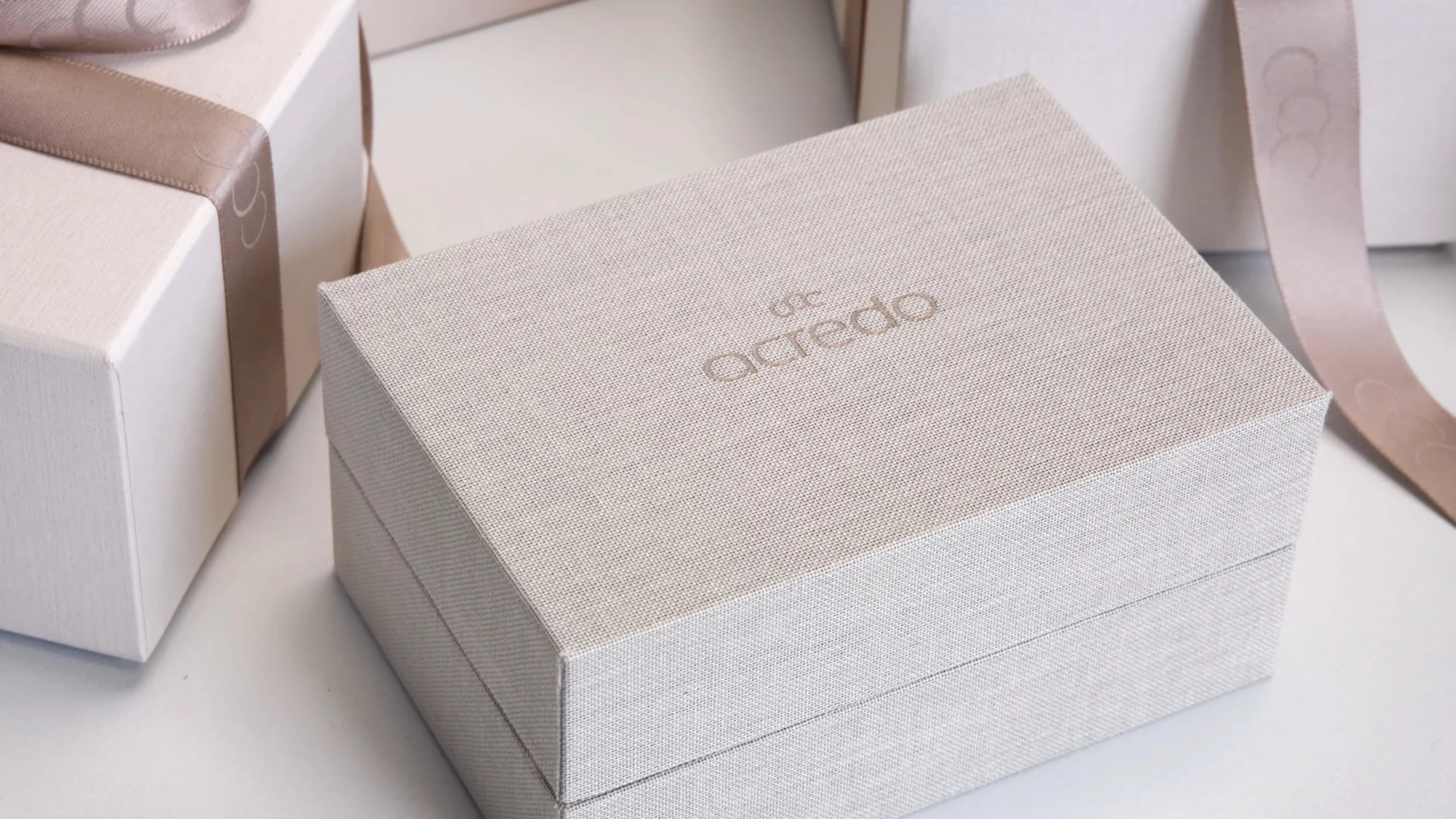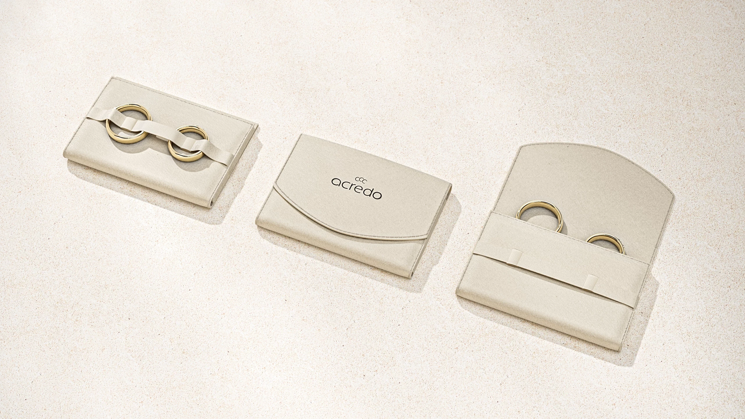 Acredo approached us to re-design their existing engagement and wedding ring packaging assortment. This includes the classic ring boxes, as well as a presentation tablet and gifting set.