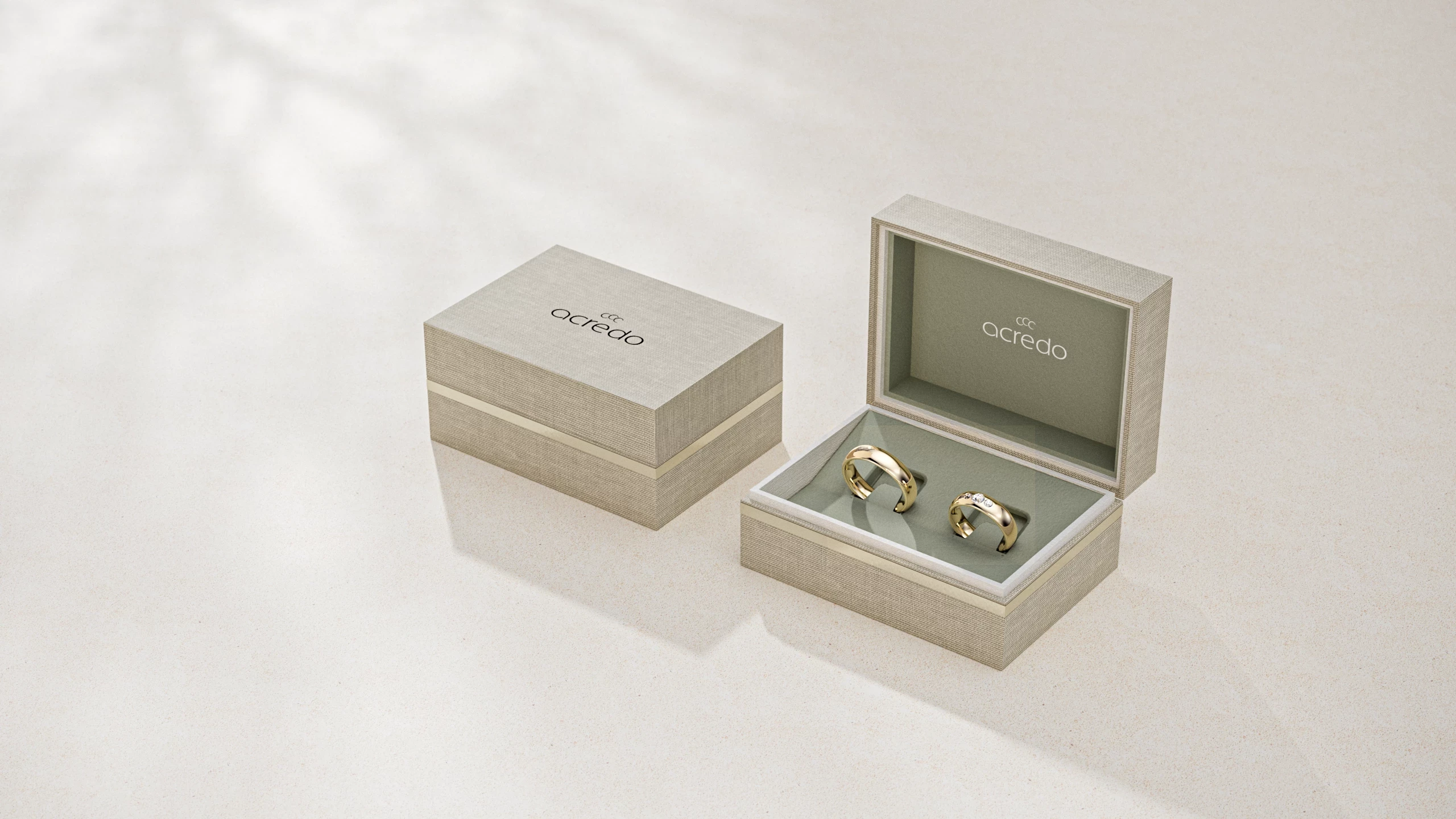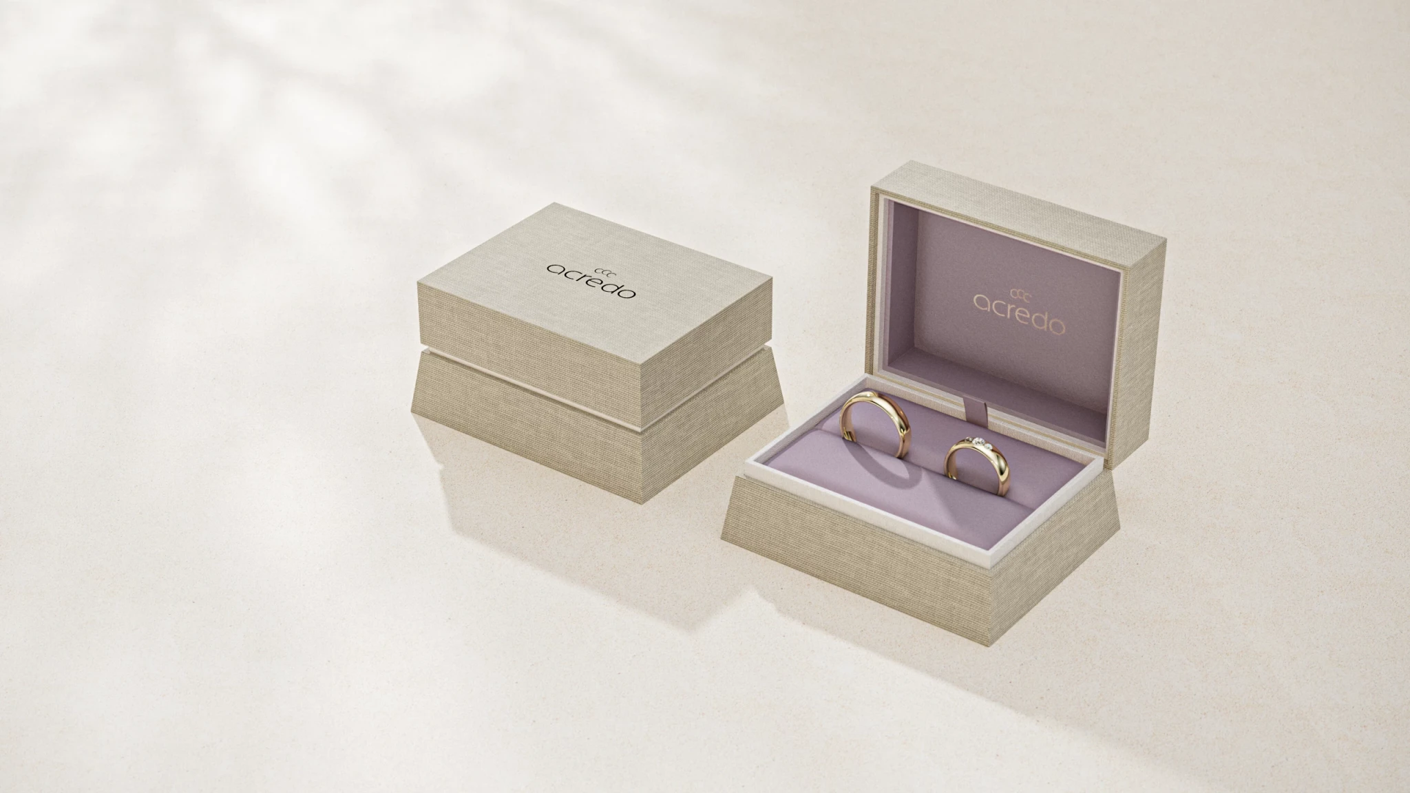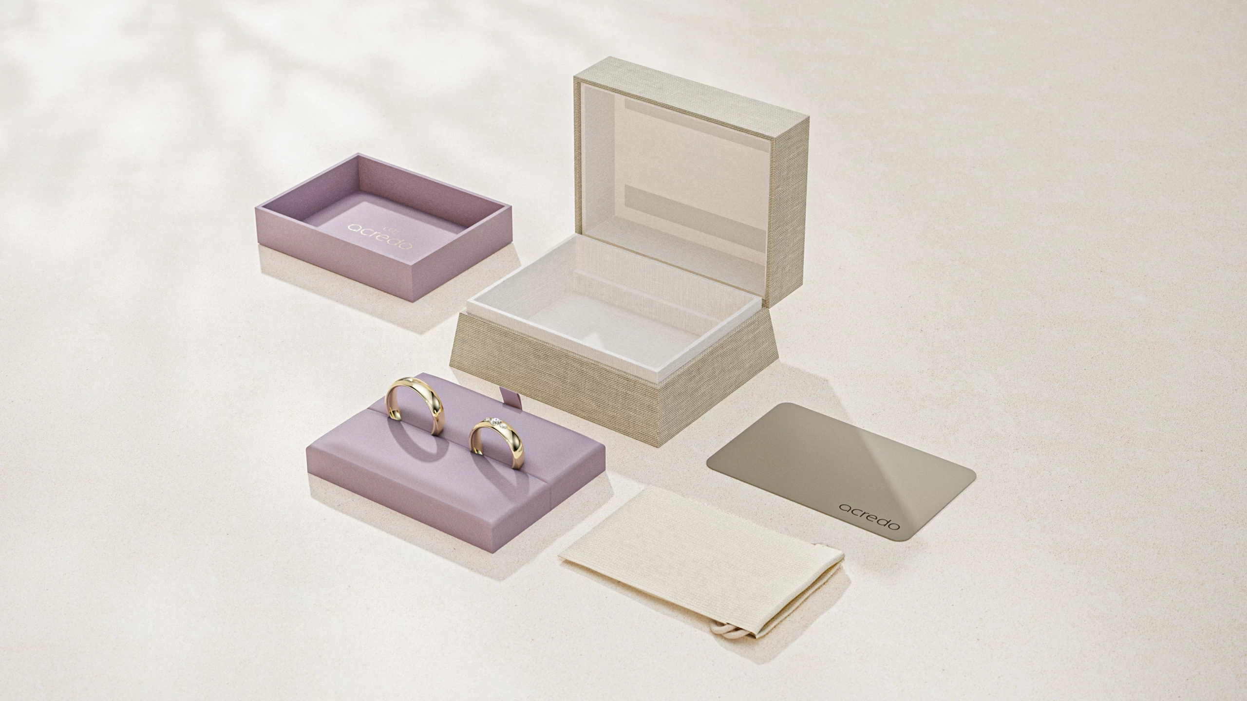 Acredo approached us to re-design their existing engagement and wedding ring packaging assortment. This includes the classic ring boxes, as well as a presentation tablet and gifting set.
