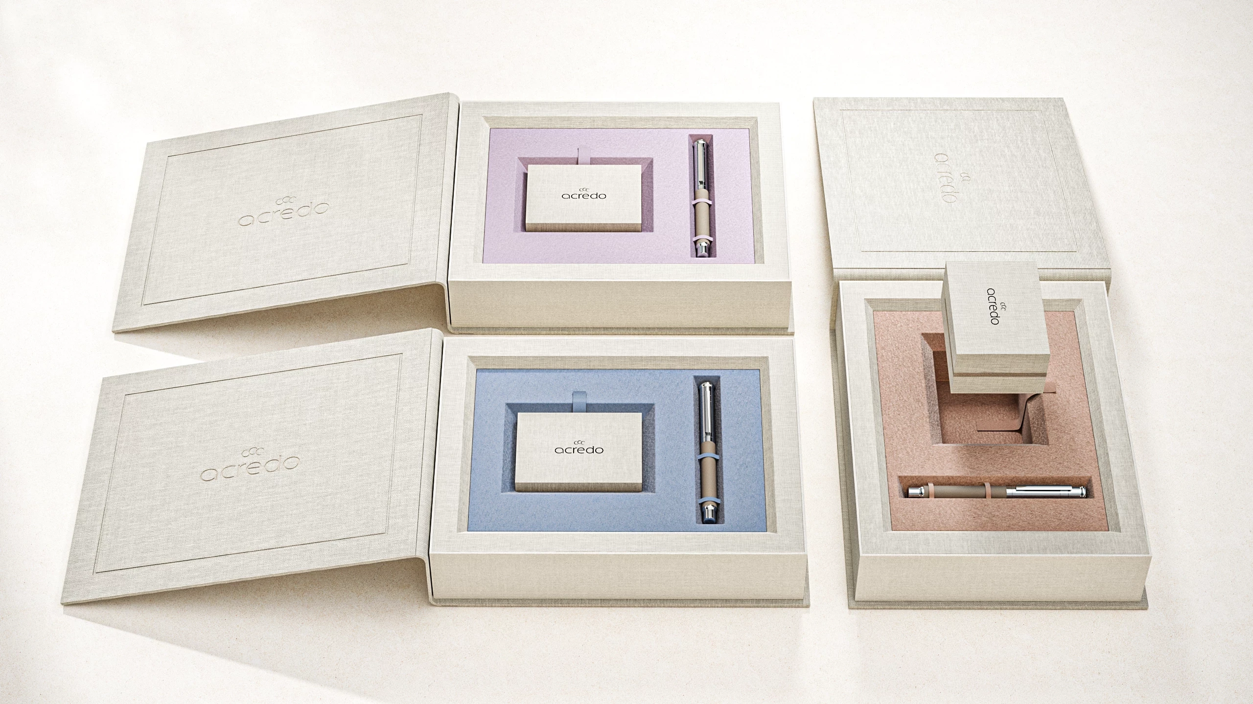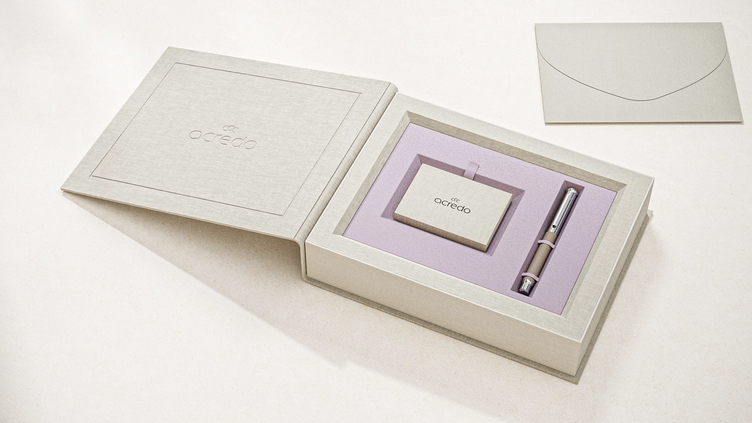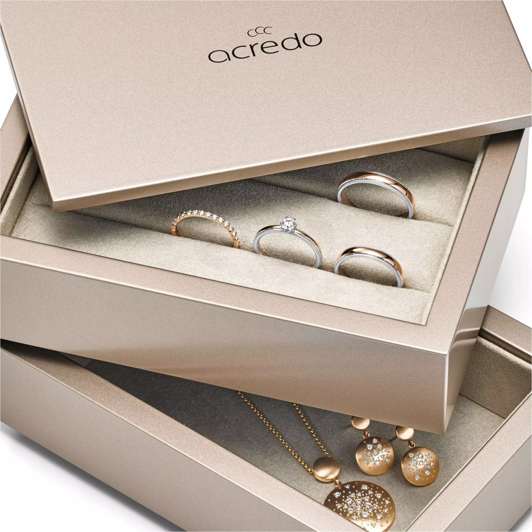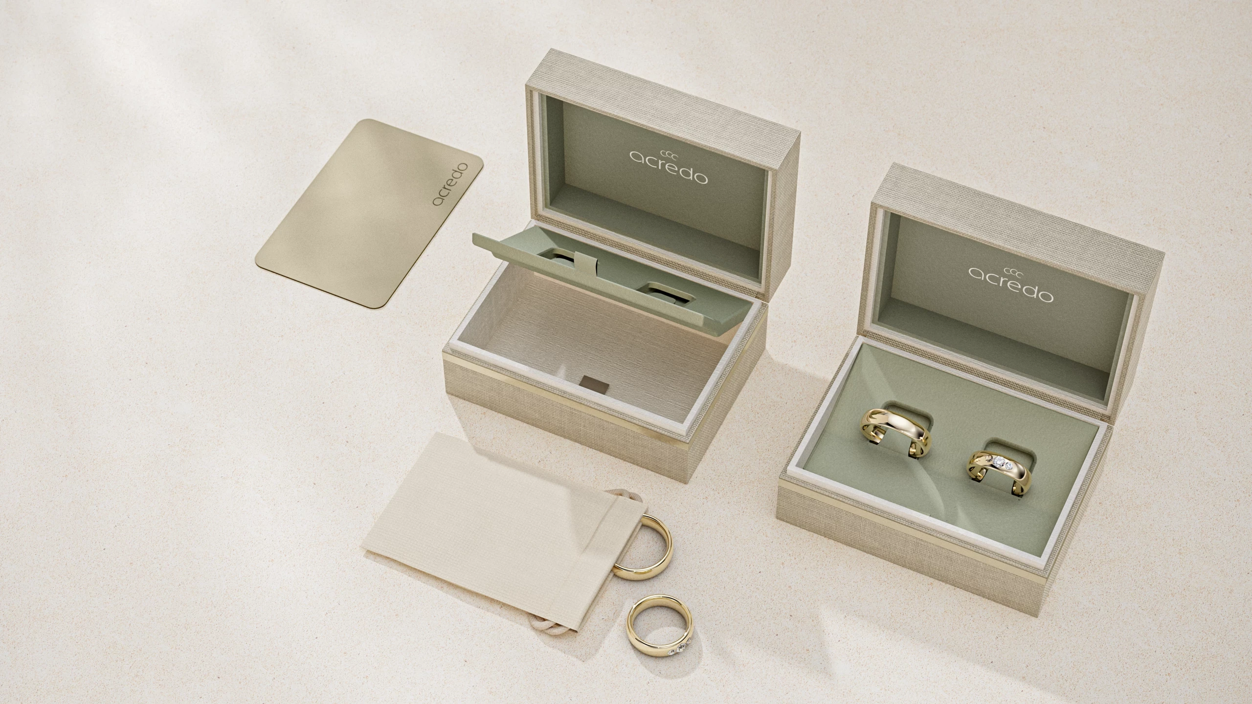 Acredo approached us to re-design their existing engagement and wedding ring packaging assortment. This includes the classic ring boxes, as well as a presentation tablet and gifting set.
