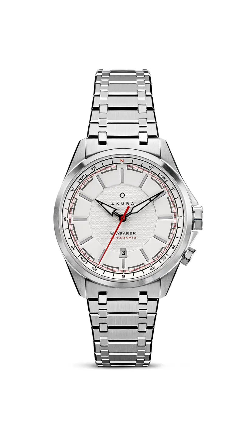 The Wayfarer is an automatic sports watch I designed, refined with community participation. Creating it alongside Akura Timepieces Ltd. was the main project of my Design Residency at Duncan of Jordanstone College of Art & Design.