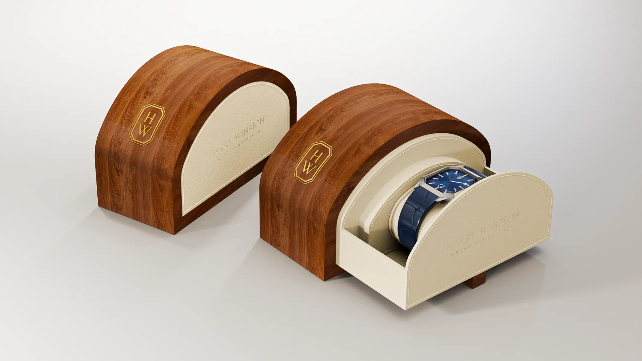 Harry Winston is the maker of some of the most exclusive timepieces & jewelry on the planet. My task was the design of a standard watch box for manufacturing in the EU.