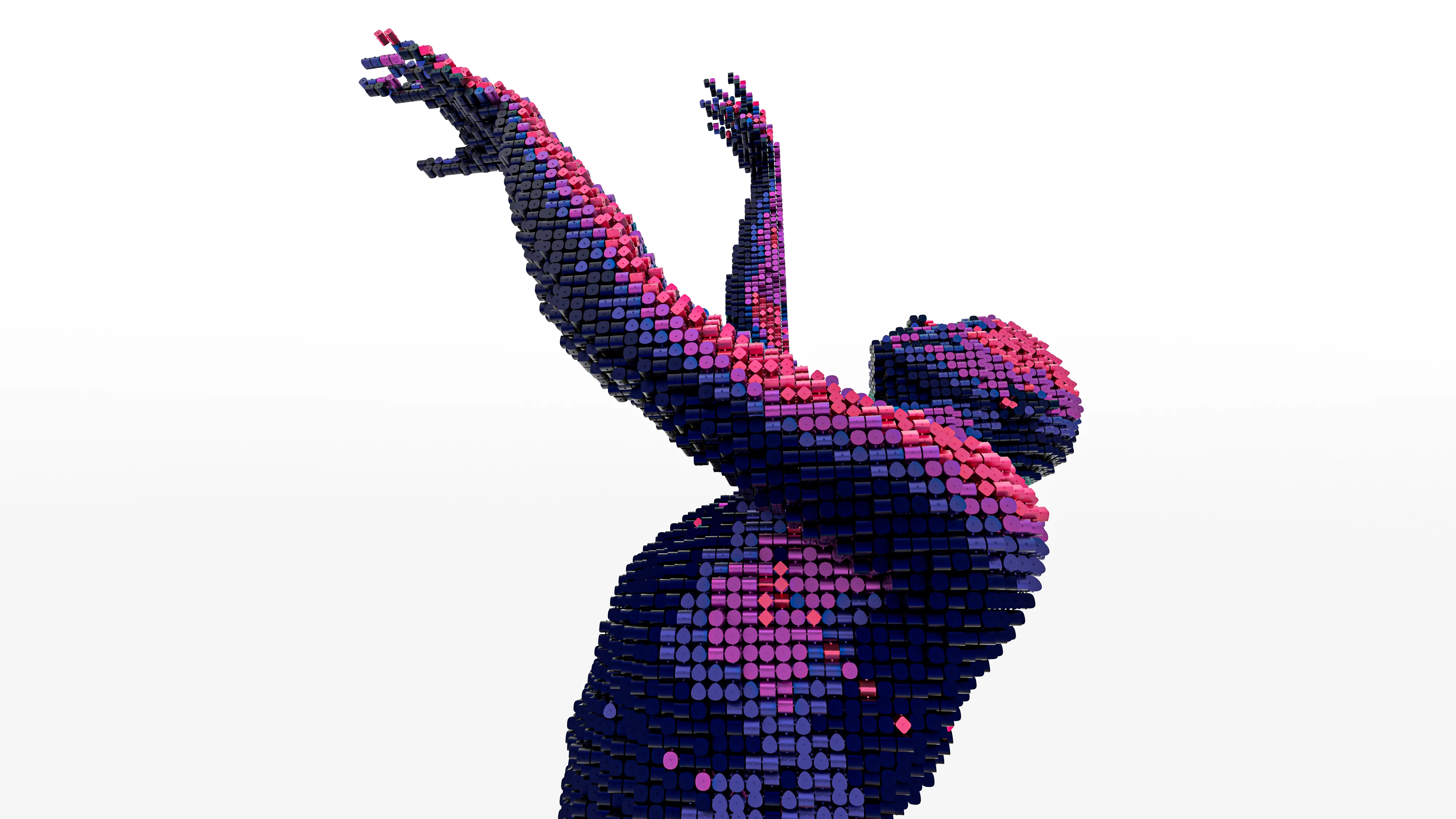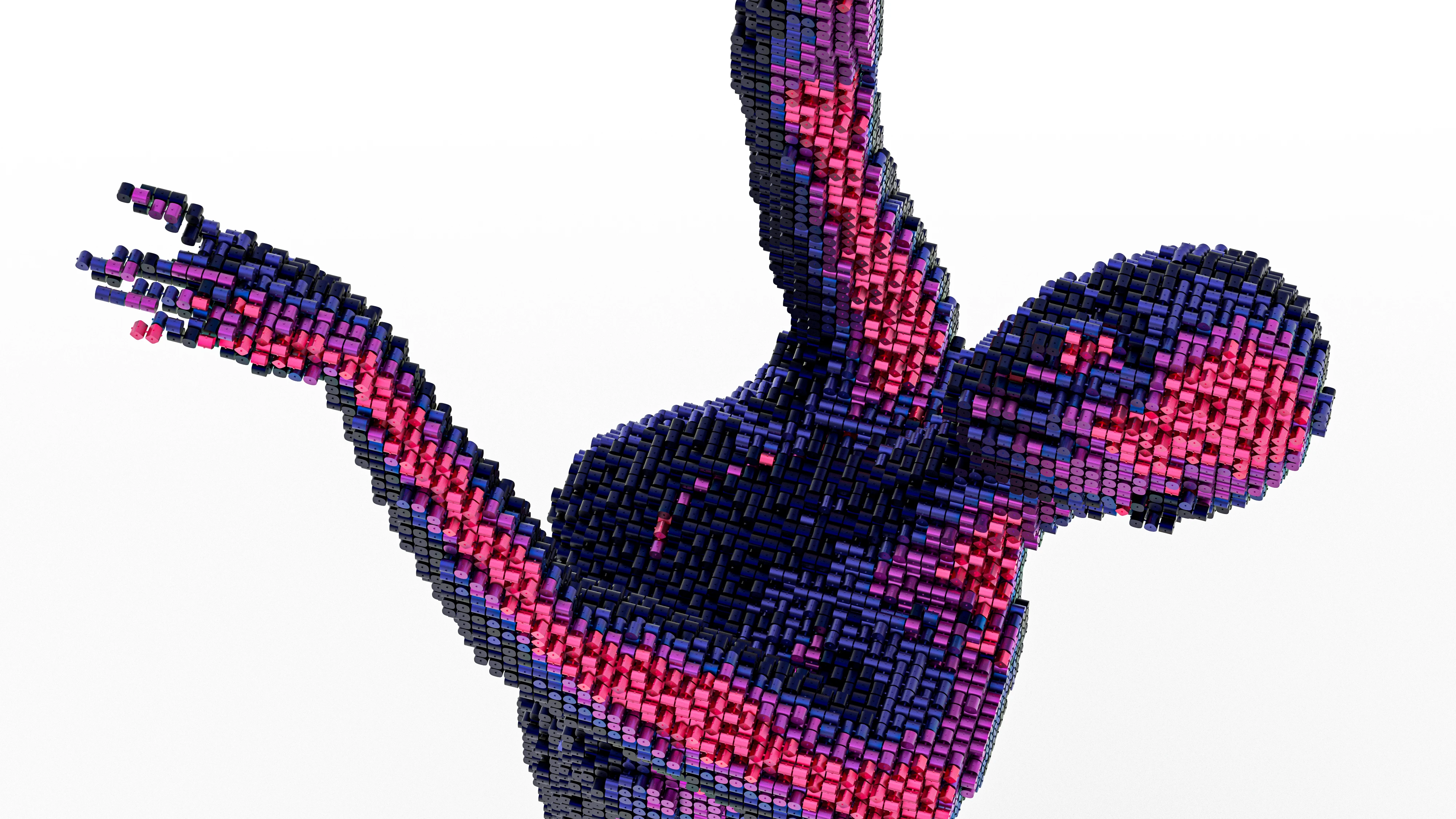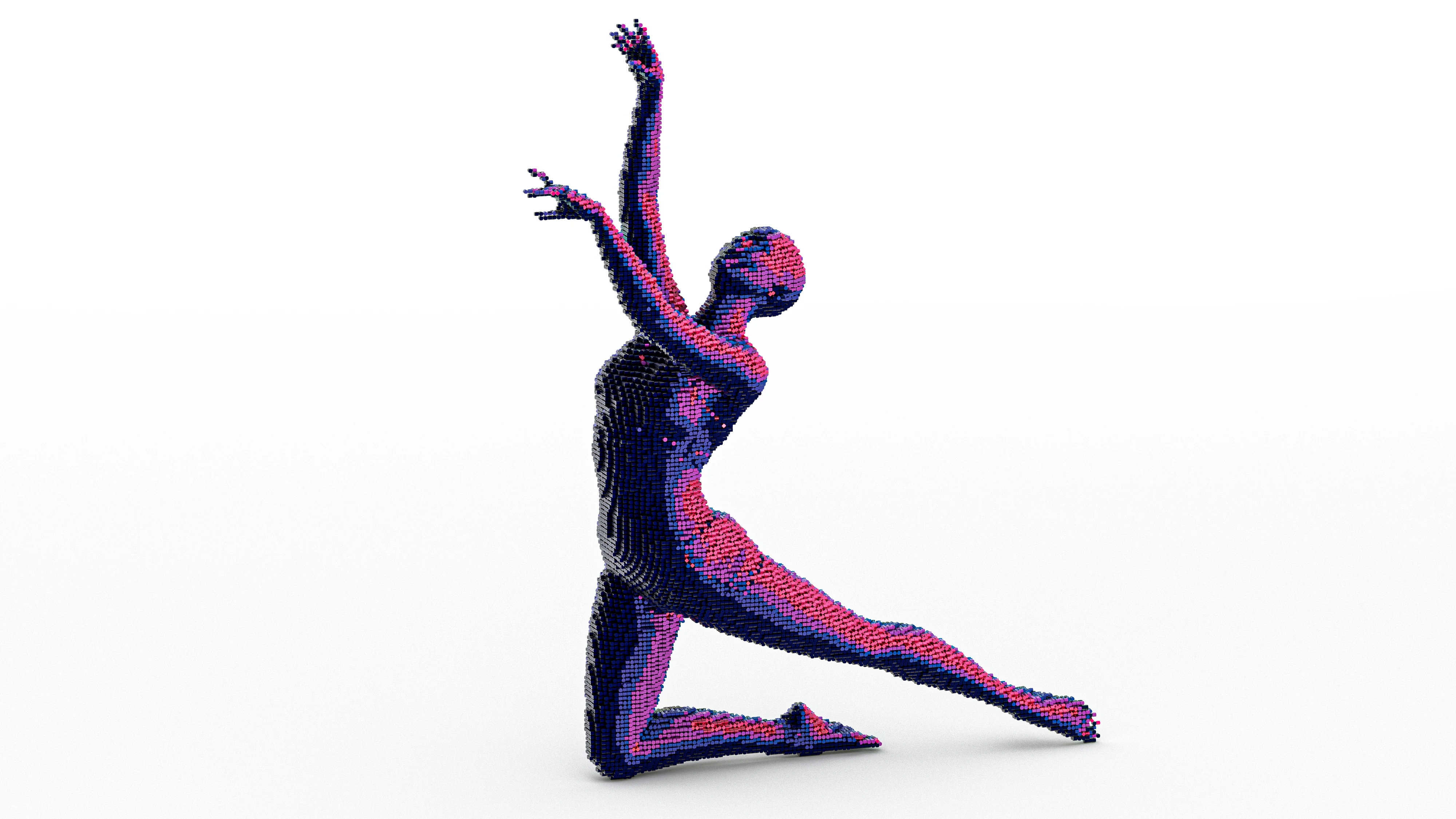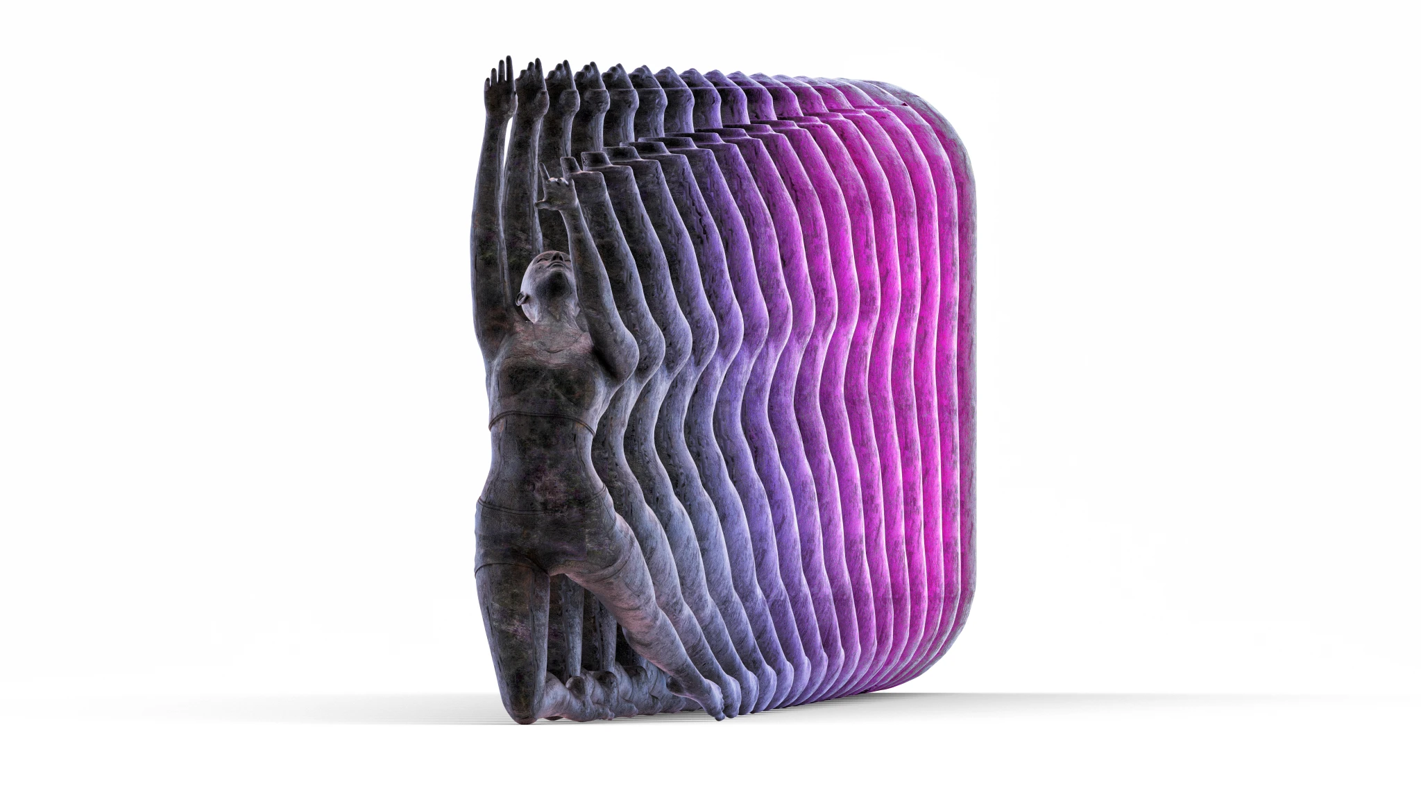The Array can also sort any geometry in 3D, for example filling out the mesh of this dancer. A light calculation sorts the four array items based on light intensity: