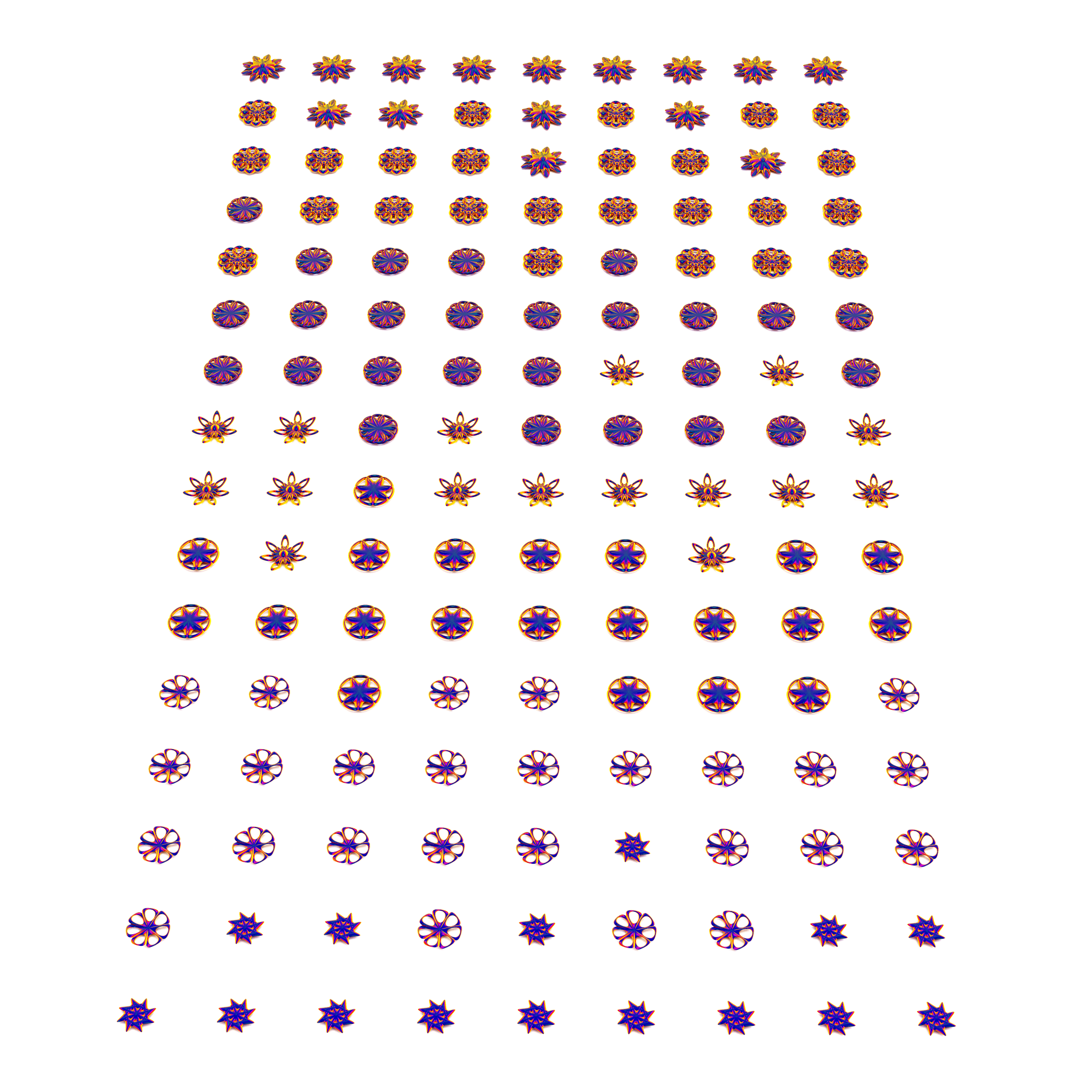 With the additions of seeds and parameter randomization this Python script allows for the rapid exploration of various nature inspired shapes.