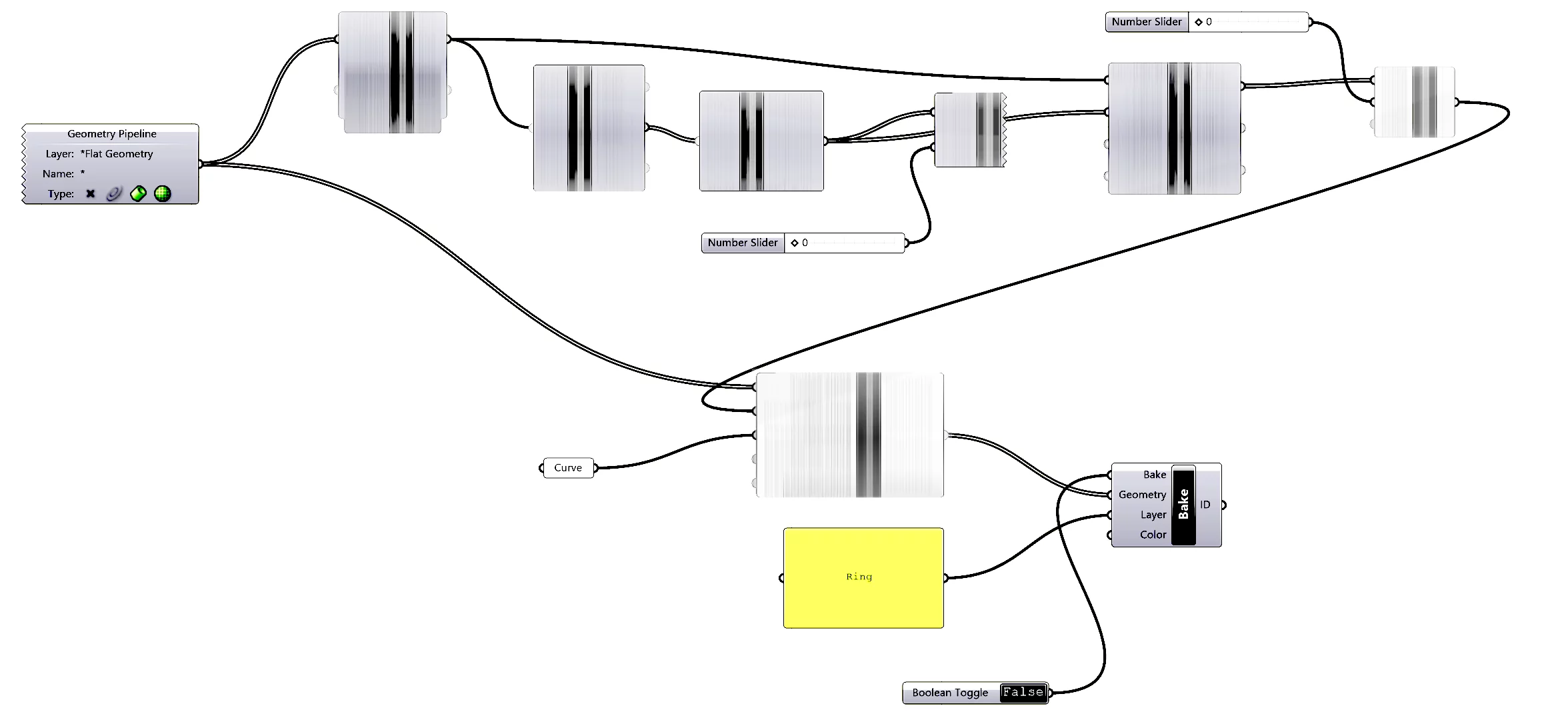FLAT2RING automates the curling up of flat geometry into a 3D circle inside Rhino. This custom plugin calculates a bounding box of the flat geometry that is used as the basis of transforming the geometry into the circular shape.