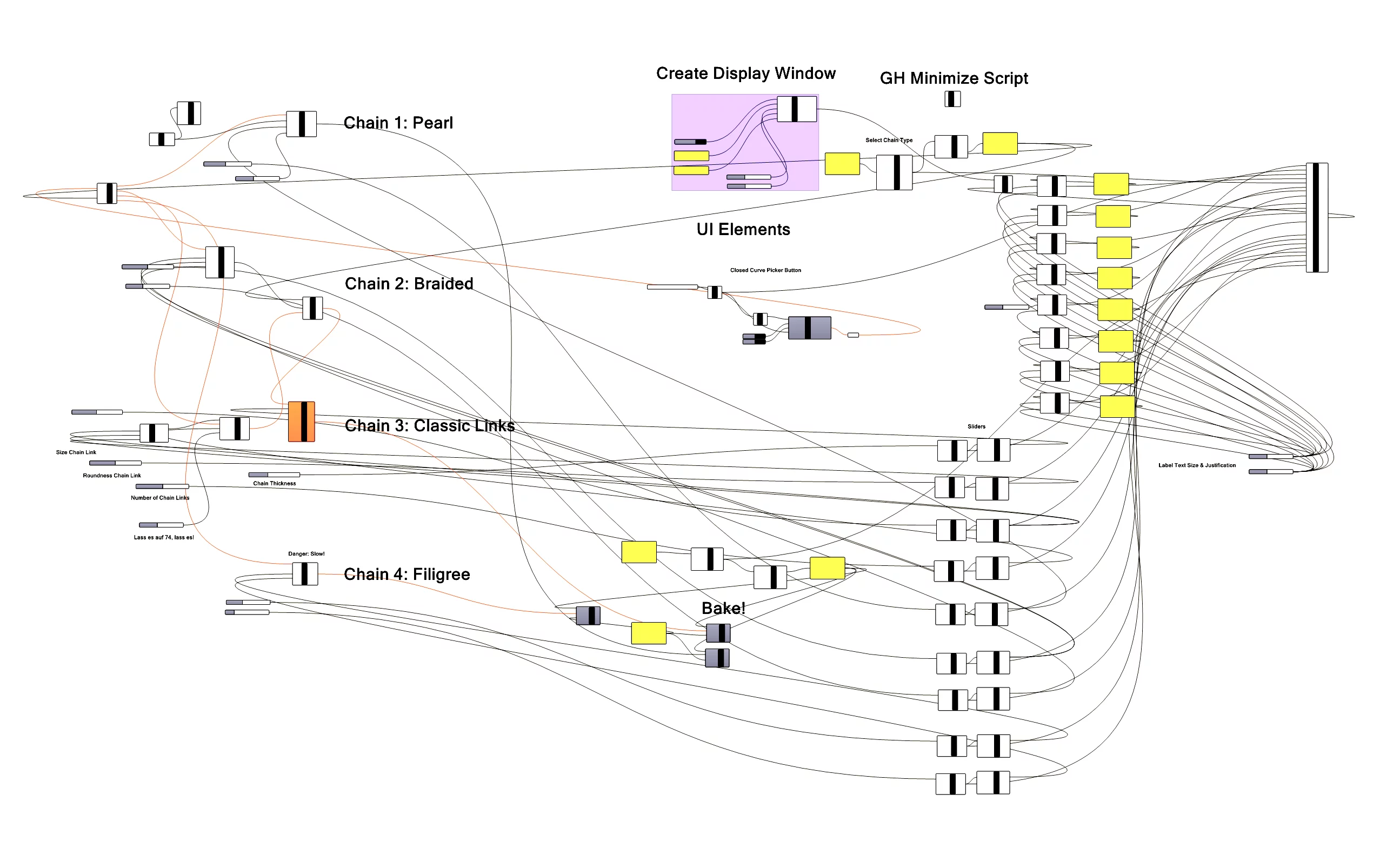 I wrote this Grasshopper plugin to significantly speed up our jewelry display visualizations. It allows parametric curves to be selected in Rhino that then have customizable chains automatically applied to them.
