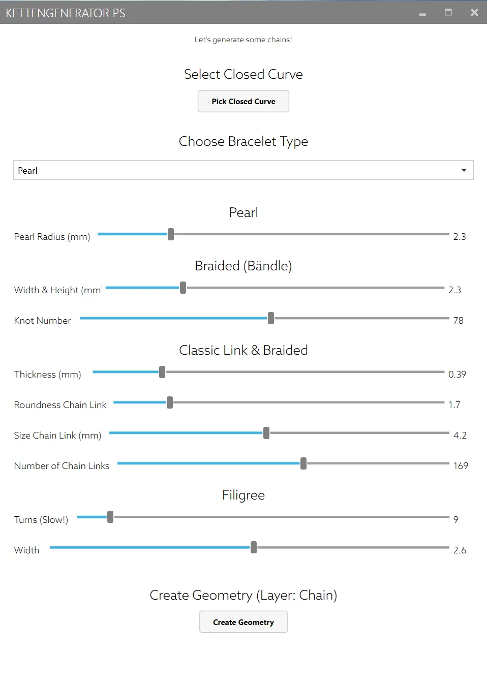 This plugin combines the jewelry focused Peacock Plugin with Human UI, allowing ease of use to non-Grasshopper users through an intuitive interface: