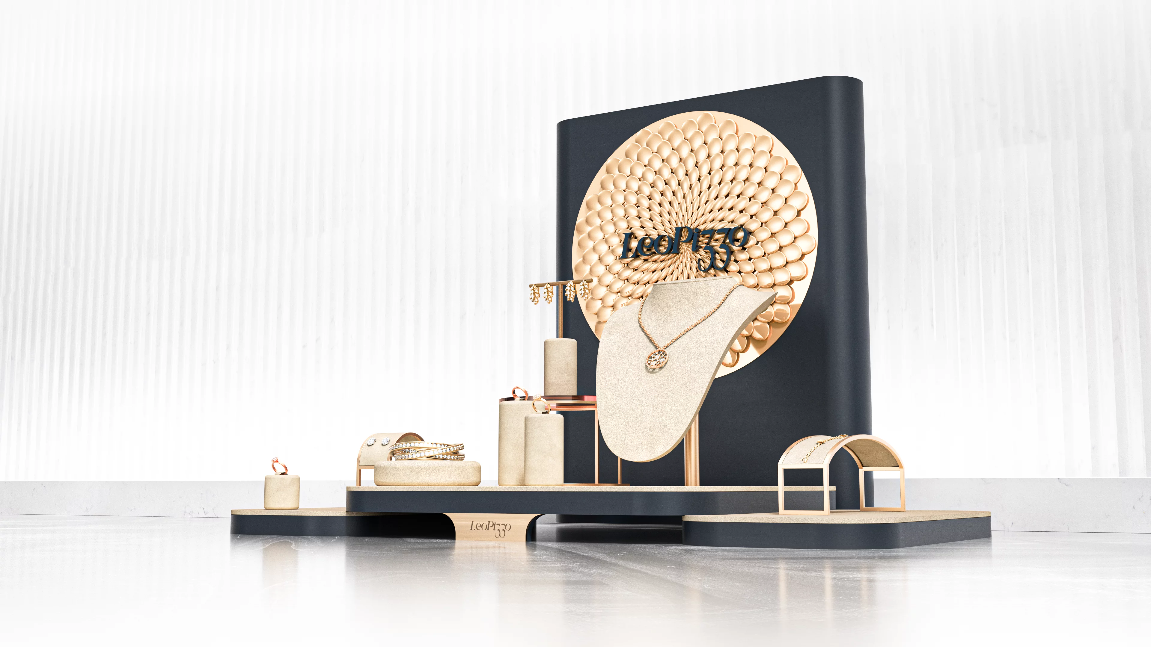 The brand follows a strong design language, and designing to create the ideal stage for their high-end luxury jewelry pieces was an exciting challenge.